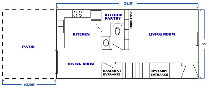 The floor plan for the basement is not listed. The dimensions of the basement are similar to the main level diagram. 31.5 x 15 feet.